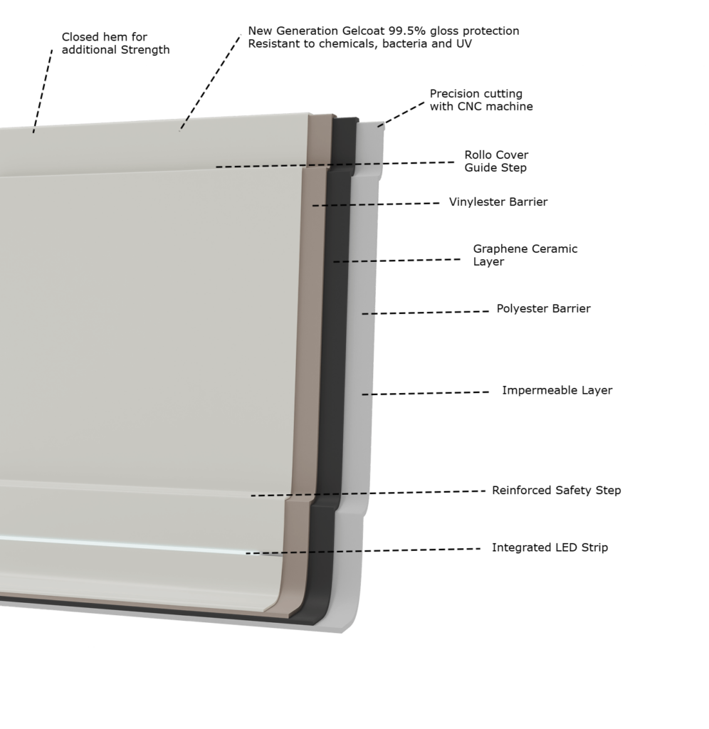 Die Graphen-Keramik-Technologie bringt Nanotechnologie in die Poolherstellung. Daher ist unser Pool der bisher stärkste in Bezug auf Biegung und Stoß ohne erhöhtes Gewicht, und darüber hinaus mit höherer Wasser- und Chemikalienbeständigkeit.