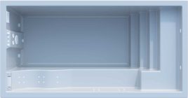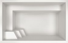 Die vorgefertigten Mini-Pools von Freedom Pools sind so konzipiert, dass sie den vorhandenen Raum optimal ausnutzen. Die Stufen und Sitze ragen nicht übermäßig hervor, um das Schwimmen – selbst mit einer Gegenstromanlage – nicht zu behindern. Sie eignen sich auch für den Einbau von Hydromassagesystemen.